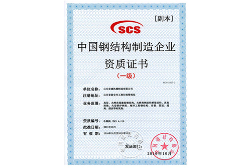 中國鋼結(jié)構(gòu)制造企業(yè)資質(zhì)證書(一級)