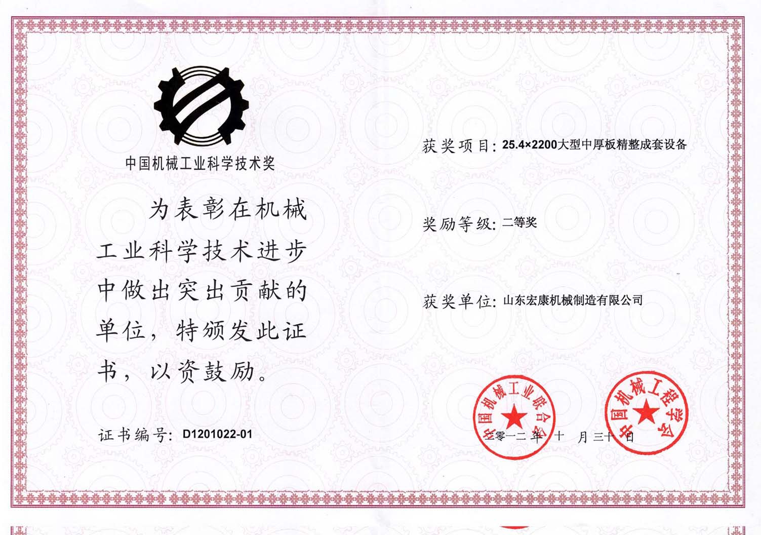 機械工業科學技術進步貢獻獎