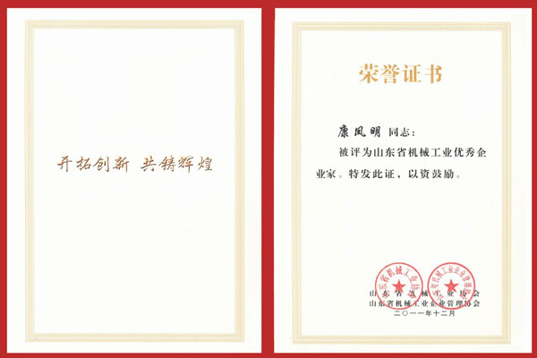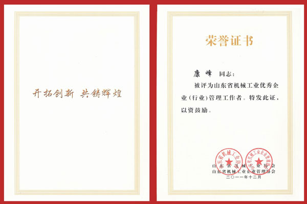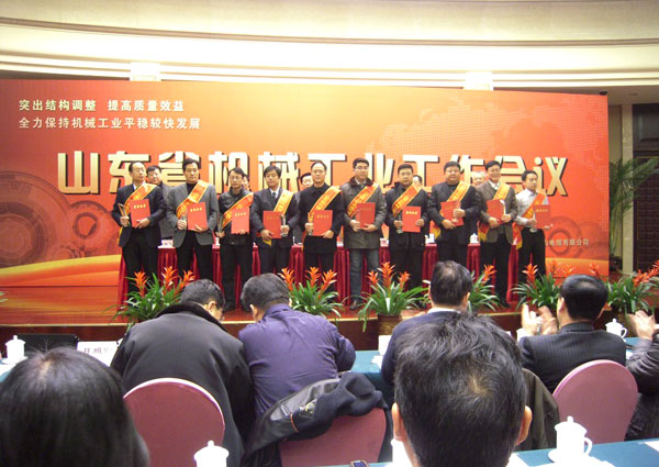 1月10日,山東省機械工業工作會議在泰安市東尊華美達酒店隆重召開,中國機械工業聯合會特別顧問朱森第、山東省機械工業協會會長劉衛東、泰安市副市長閆新建等領導出席會議并頒獎。公司董事長、總經理康鳳明,常務副總經理潘憲平、副總經理康峰等領導參加會議。董事長、總經理康鳳明榮獲“山東省機械工業優秀企業家”稱號,副總經理朱洪臣榮獲“山東省機械工業有突出貢獻科技專家”稱號,副總經理康峰榮獲“山東省機械工業優秀企業(行業)管理工作者”稱號。