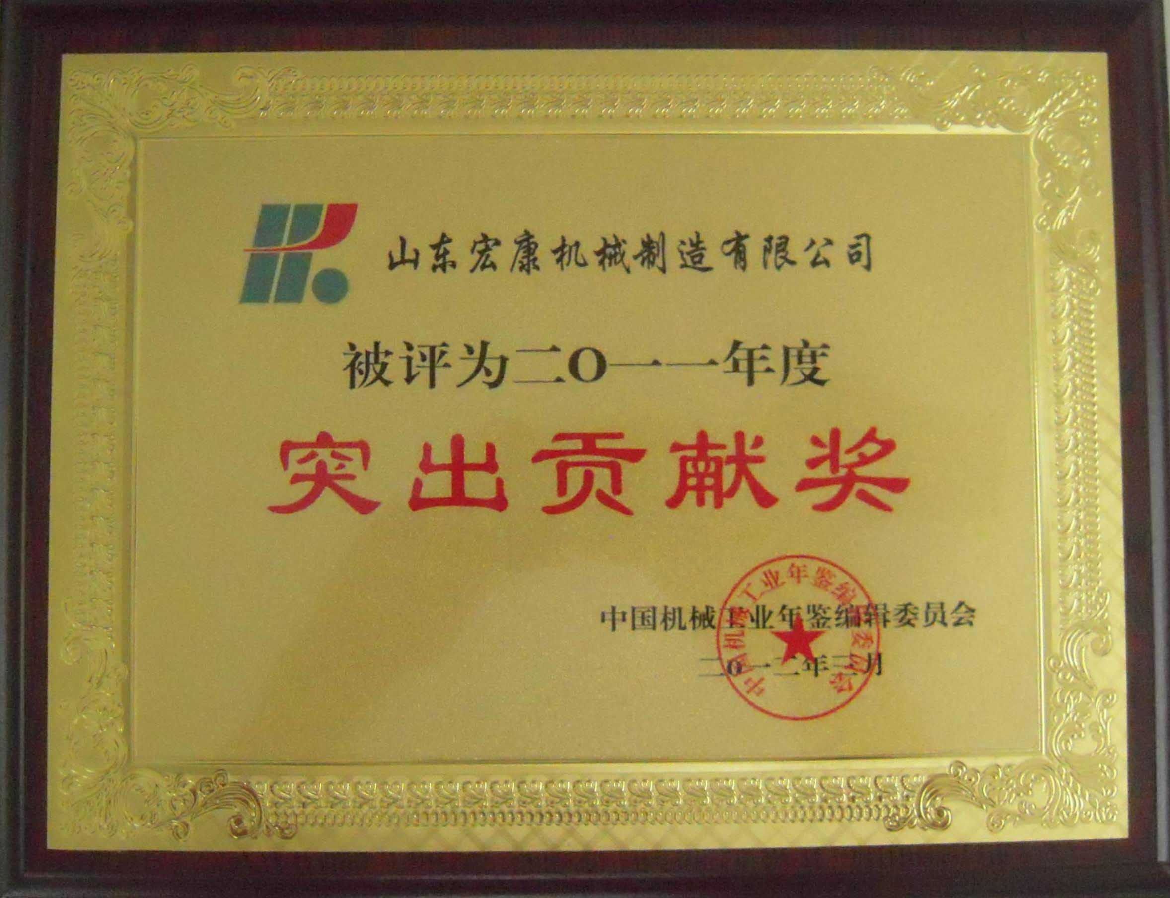 集團(tuán)被中國機(jī)械工業(yè)年鑒編輯委員會(huì)授予“2011年度突出貢獻(xiàn)獎(jiǎng)”