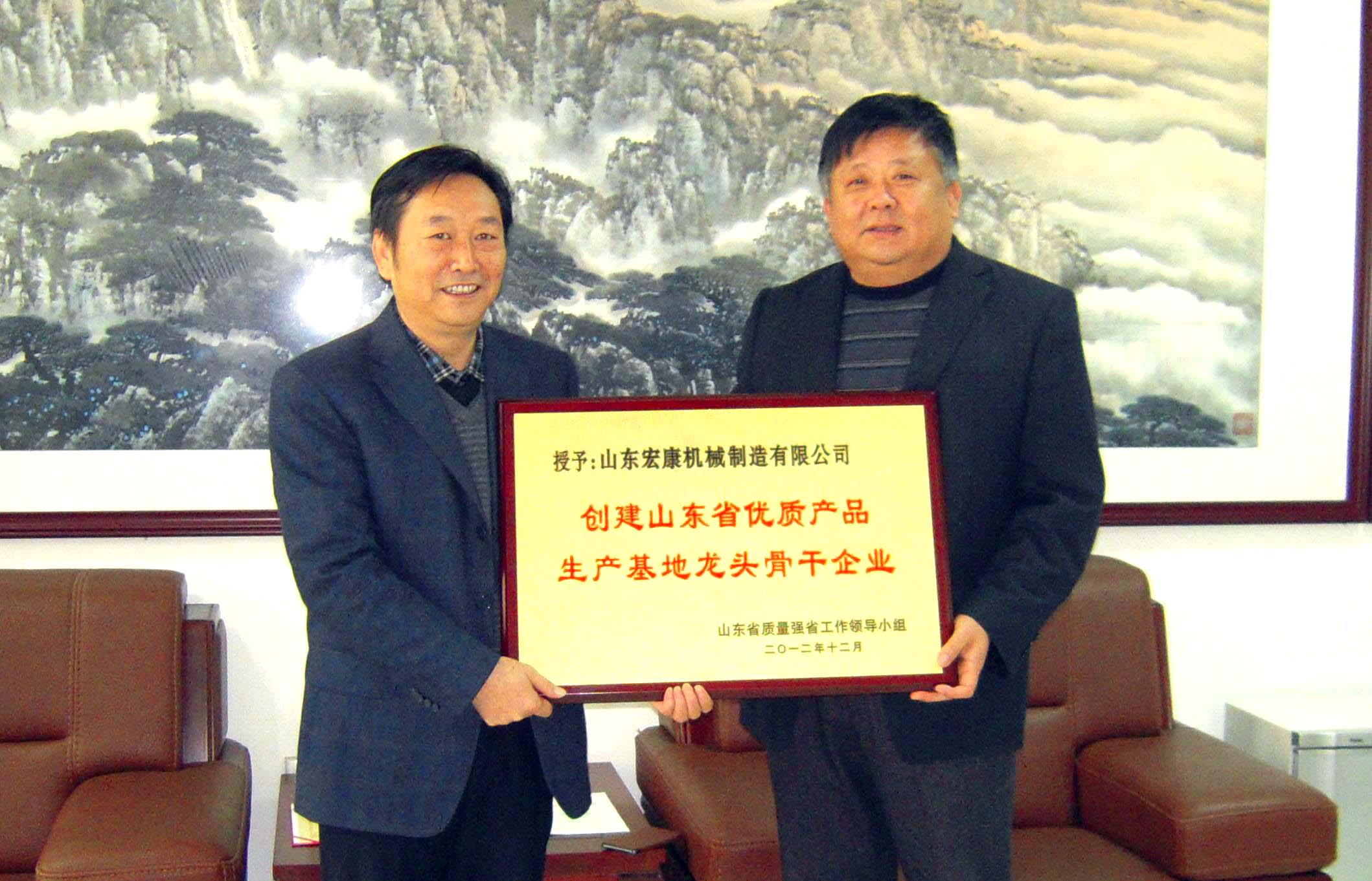 近日,山東省質(zhì)量興省領(lǐng)導(dǎo)小組下發(fā)魯質(zhì)強(qiáng)發(fā)【2012】2號文件《關(guān)于表彰2012年創(chuàng)建山東省優(yōu)質(zhì)產(chǎn)品生產(chǎn)基地及龍頭骨干企業(yè)的通知》,宏康榜上有名,喜獲2012年“創(chuàng)建山東省優(yōu)質(zhì)產(chǎn)品生產(chǎn)基地龍頭骨干企業(yè)”榮譽(yù)稱號。圖為1月30日岱岳區(qū)質(zhì)監(jiān)局局長張復(fù)田向集團(tuán)董事長、總經(jīng)理康鳳明頒發(fā)榮譽(yù)牌匾。